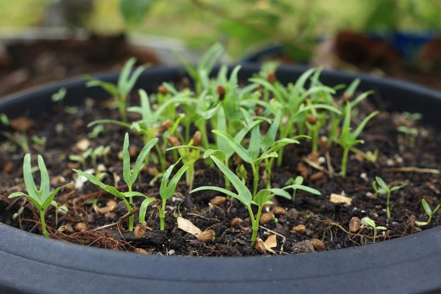 - Mật độ hạt gieo không nên quá lớn bạn nhé. Sau khi gieo xong bạn lấy một lớp đất mỏng lấp lên.