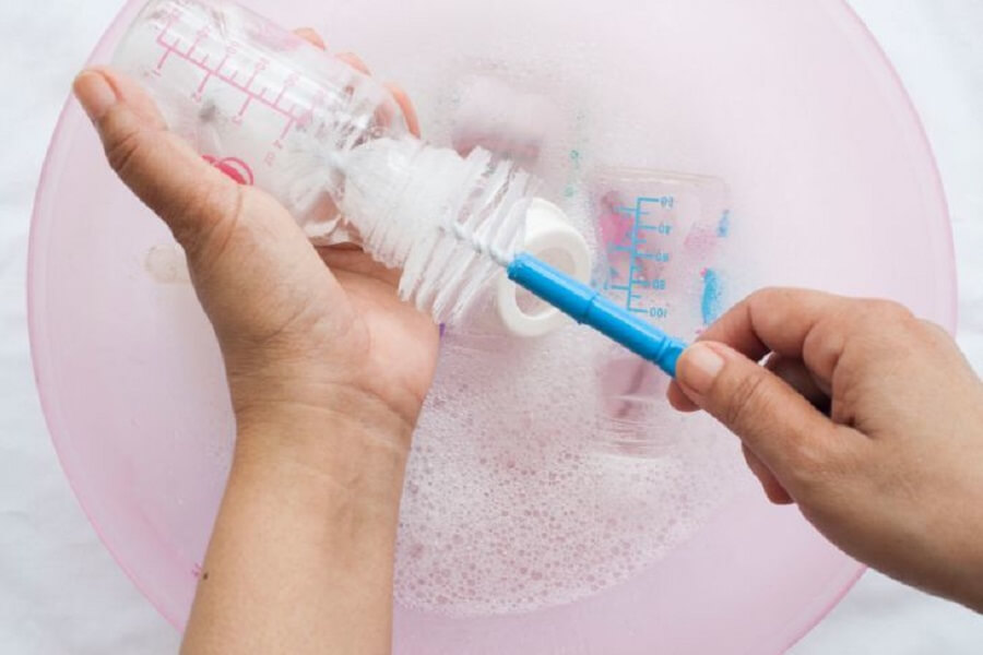 Cách để vệ sinh bình sữa trước khi tiệt trùng như sau: