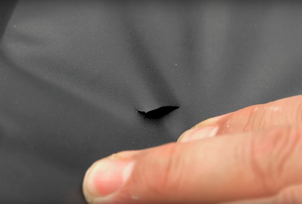 Bạn có thể dùng tay để cảm nhận, hoặc dùng khăn nhúng nước lau qua chỗ vá để kiểm tra xem lỗ thủng.