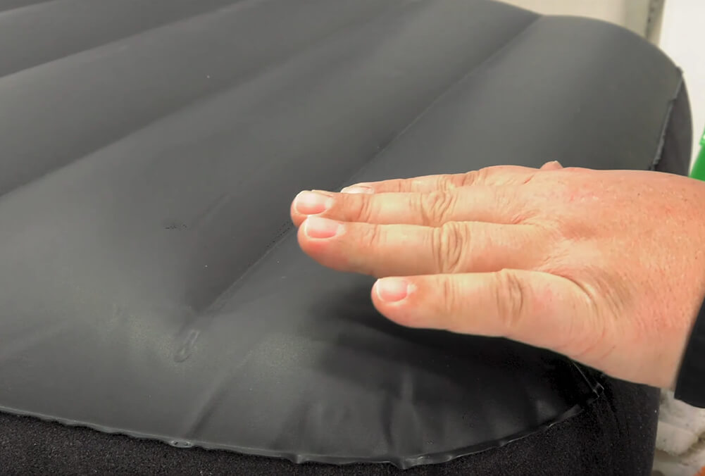 Đây là nơi cần kiểm tra đầu tiên sau khi nệm đã được làm căng. Vì đây là nơi có thể làm thoát khí nhiều nhất nếu như có vấn đề.