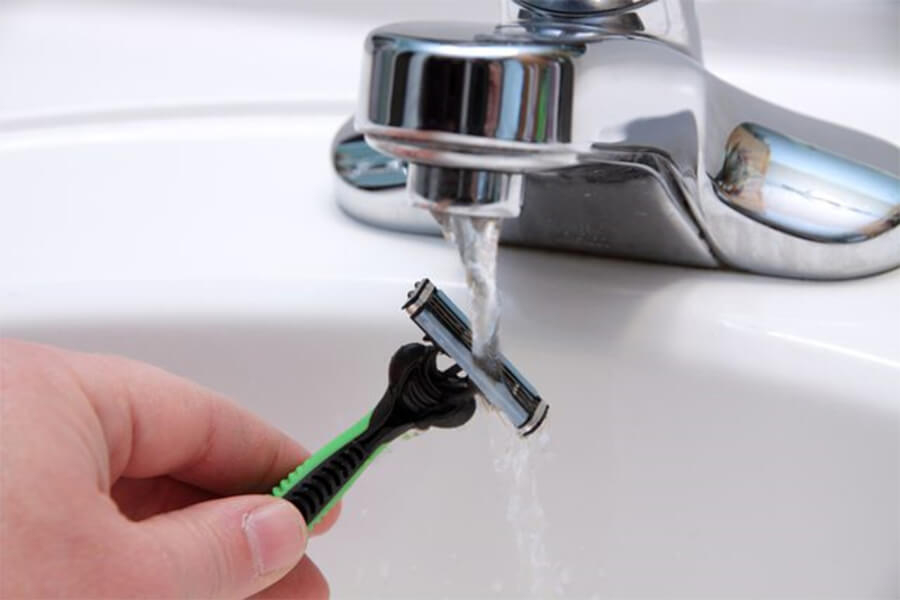 - Xả nước mạnh vào lưỡi dao để áp lực của nước loại bỏ được lớp râu và lớp kem cạo râu còn sót bên trong.