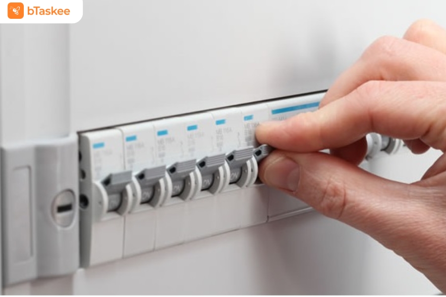 Ngắt nguồn điện tại CB hoặc aptomat và chờ ít nhất 10 phút để đảm bảo điện đã xả hết trước khi thao tác. Điều này rất quan trọng để tránh nguy cơ giật điện trong quá trình vệ sinh.
