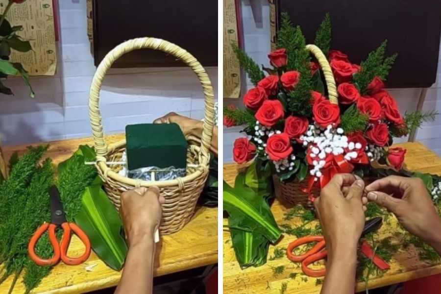 Cách cắm giỏ hoa để bàn đơn giản