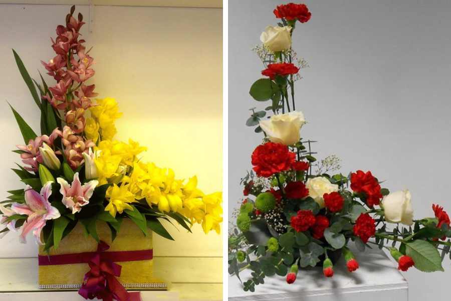 Kiểu cắm hoa để bàn hình chữ L
