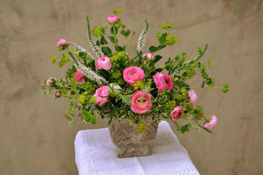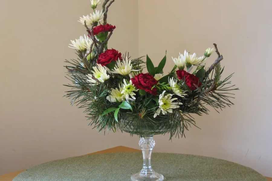 Kỹ thuật cắm hoa để bàn với bình sứ