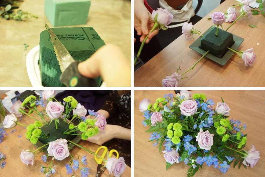 Kỹ thuật cắm hoa để bàn với mút xốp