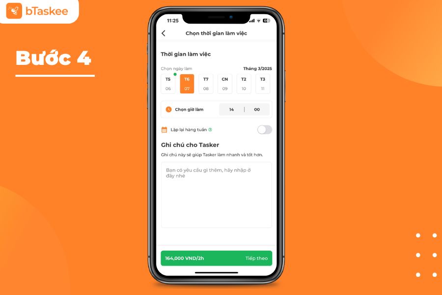 - Xem thông tin giá cả và đánh giá của Tasker trước khi xác nhận