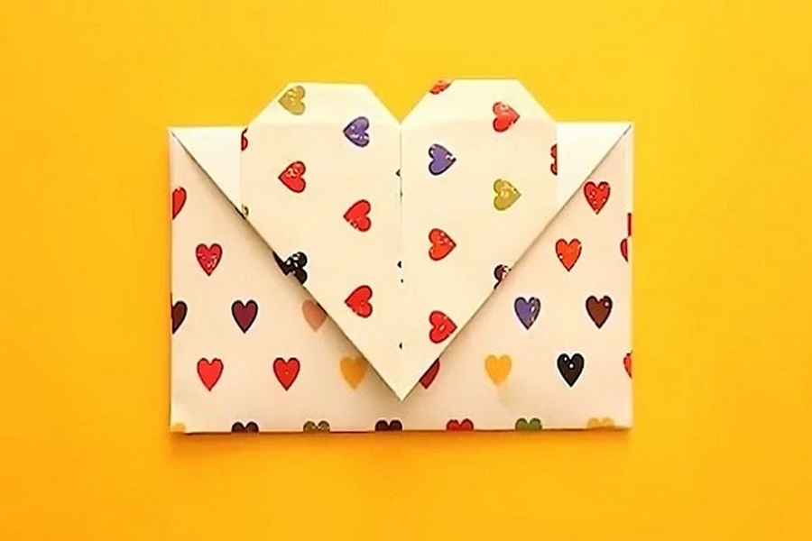 Gấp đuôi hình trái tim xuống là hoàn thành một bao lì xì handmade đơn giản.