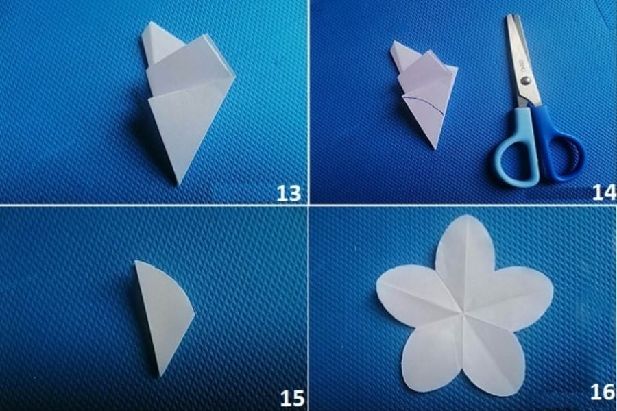 Bước 14: Dùng bút vẽ cánh hoa như hình 14. Vẽ xong thì cắt theo đường vừa vẽ bằng kéo.