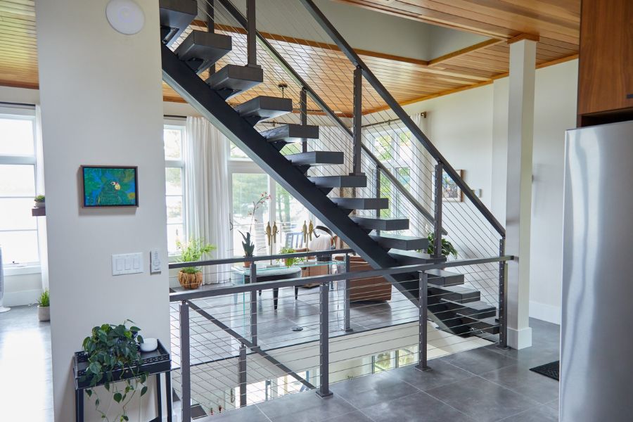 Cầu thang ziczac sẽ tạo cảm giác phóng khoáng, thoáng đãng hơn cho không gian sử dụng. Ngoài ra, nó còn được ưa chuộng bởi vẻ đẹp hiện đại, tinh tế và độc đáo.