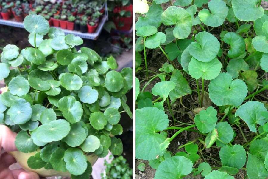 Lá cây đồng tiền tròn xoe như lá sen, dày hơn và có màu xanh đậm. Trong khi đó, phiến lá rau má có hình thận hoặc gần tròn, mép khía tai bèo, mỏng và có màu xanh nhạt hơn.