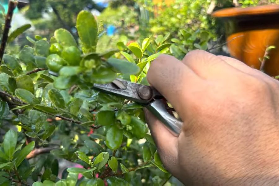 Là giống cây cảnh bonsai có giá trị kinh tế cao nên tạo dáng, uốn cành và cắt tỉa cành lá cho Hải Châu là việc làm cần thiết. Bạn dùng kéo hoặc kìm bấm cành sắc nhọn để tỉa bớt cành thừa, lá cây giúp hạn chế tình trạng mất nước và tập trung dinh dưỡng để Hải Châu ra hoa.