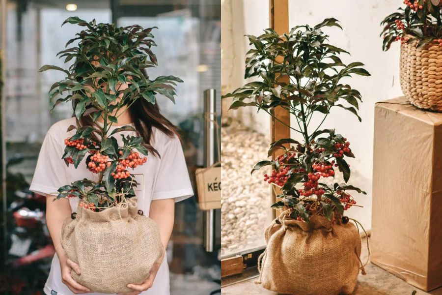 Đặc biệt, trong ngày Tết, để thêm phần lung linh bạn có thể trang trí vài sợi chỉ đỏ hoặc thắt nơ đỏ hay treo thêm vài đồng tiền lên cây. Điều này giúp xua đuổi u ám, xui xẻo và mang lại điềm lành cho năm mới, cùng với hy vọng thăng tiến trong công việc và thành công phát đạt.