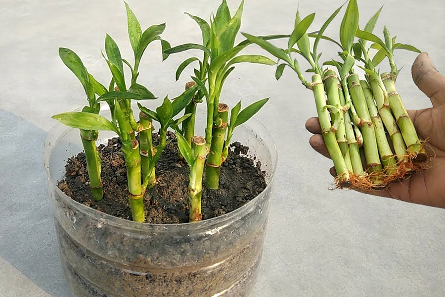 - Bước 3: Khi rễ của phần cây con đã phát triển ổn định, chuyển cành phát lộc sang bình chứa nước để trồng thủy sinh hoặc đặt cây vào chậu đất tơi xốp.