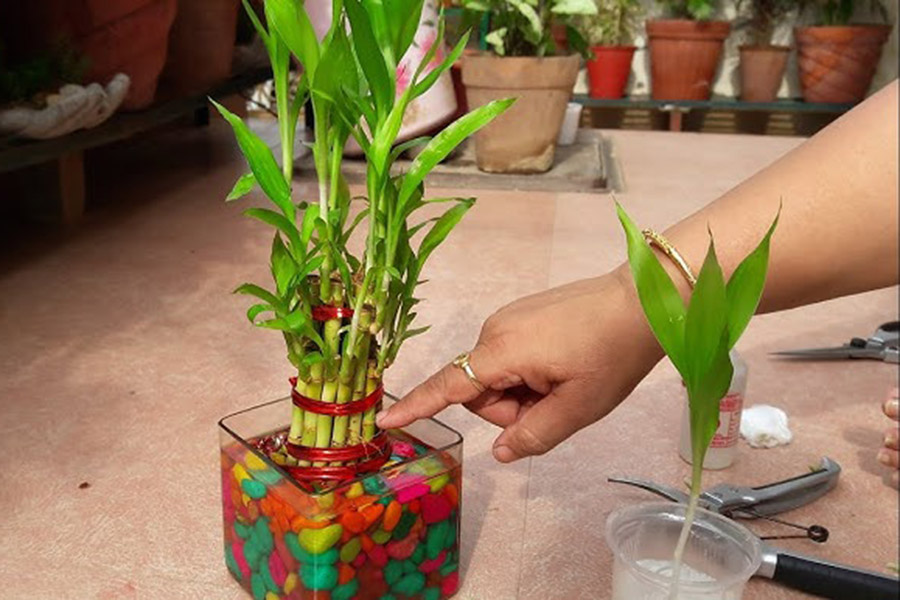 Trường hợp trồng cây phát lộc thủy sinh, bạn hãy chú ý để rễ cây luôn ngập hoàn toàn trong nước. Bạn có thể theo dõi tình trạng nước và thay mới 1 – 2 lần/tuần để đảm bảo nước trong bình luôn sạch.