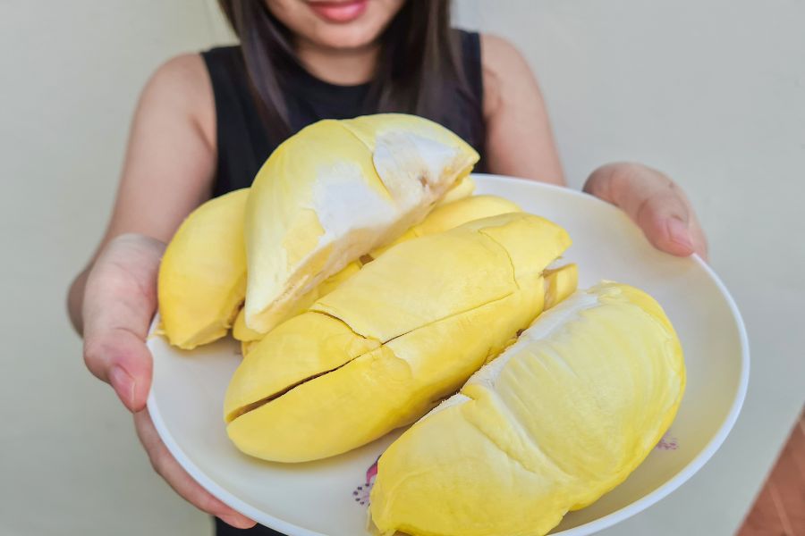 – Phụ nữ đang mang thai nên ăn vừa phải vì sầu riêng khá nóng.