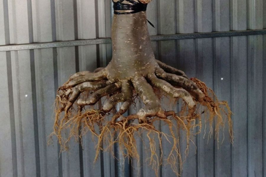 - Rễ: Gốc to, bộ rễ tạo thành mạng lưới đan xen với nhau có dạng nhánh, phân thành nhiều nhánh rễ con giúp dễ dàng hấp thụ nước và chất dinh dưỡng; giữ nước tốt giúp cây chịu được những thời gian khô hạn. Rễ có lớp vảy trên bề mặt.
