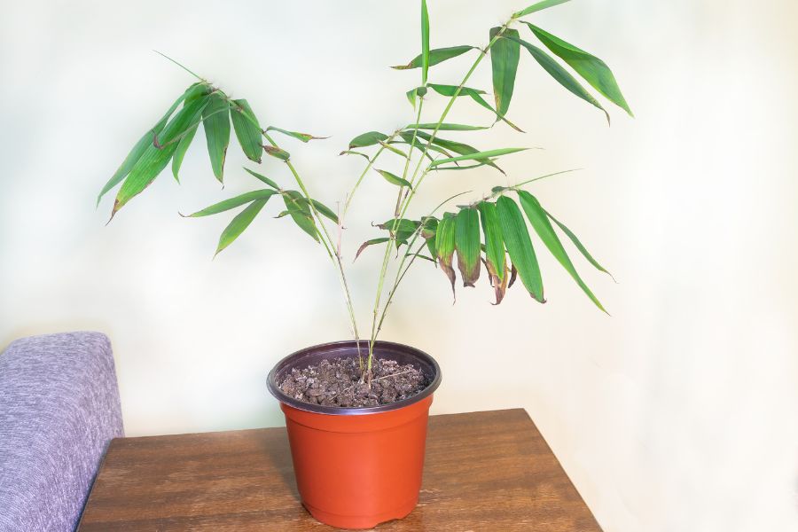 - Khi trồng trúc trong nhà và cây đã mọc cao bạn hãy cắm thêm một cọc tre, cứng để giúp nâng đỡ và tránh cây bị gãy đổ.