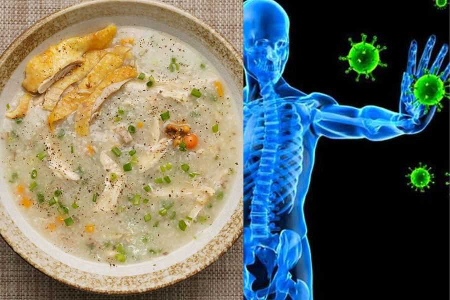 Chất dinh dưỡng trong cháo gà không thể thiếu protein – đây là thành phần quan trọng giúp tăng cường khả năng miễn dịch cho cơ thể. Ngoài ra, các dưỡng chất khác như selen và kẽm, chất chống oxy hóa, vitamin B có trong thực phẩm này cũng hỗ trợ để duy trì một hệ thống miễn dịch luôn khỏe mạnh.
