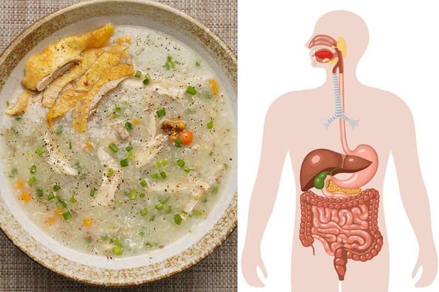 Trong cháo gà có chứa nhiều nước và chất xơ giúp tăng cường hoạt động của đường ruột nên vô cùng tốt cho hệ tiêu hóa. Từ đó các vấn đề như đầy hơi, khó tiêu, táo bón sẽ được giảm thiểu đáng kể. Bên cạnh đó, nước từ cháo gà sẽ hỗ trợ dưỡng ẩm và giúp giảm tình trạng viêm nhiễm cho đường tiêu hóa.