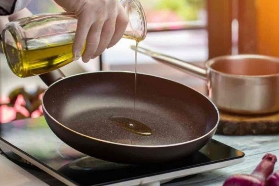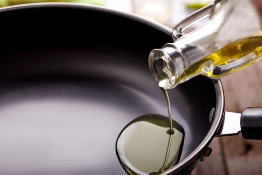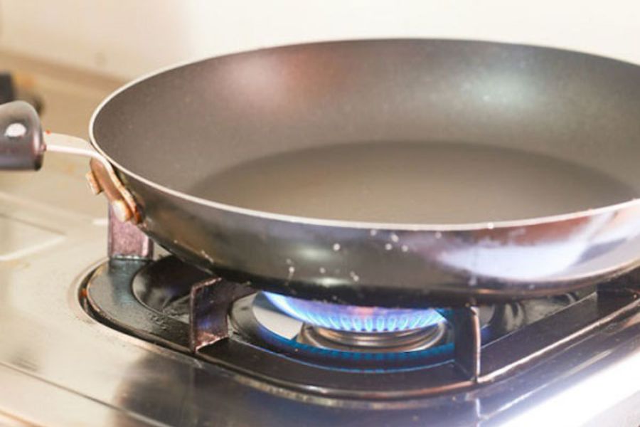 Cho dầu ăn vào chảo trước khi làm nóng chảo