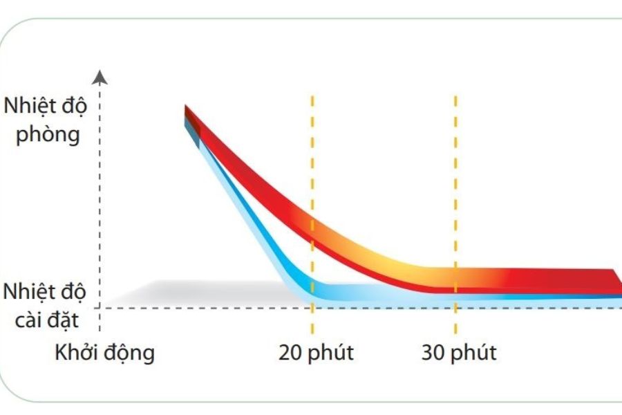 Sau đó, thiết bị sẽ tiếp tục tăng thêm 2°C ở thời gian tiếp theo và duy trì trạng thái đó tới khi máy lạnh ngừng hoạt động.