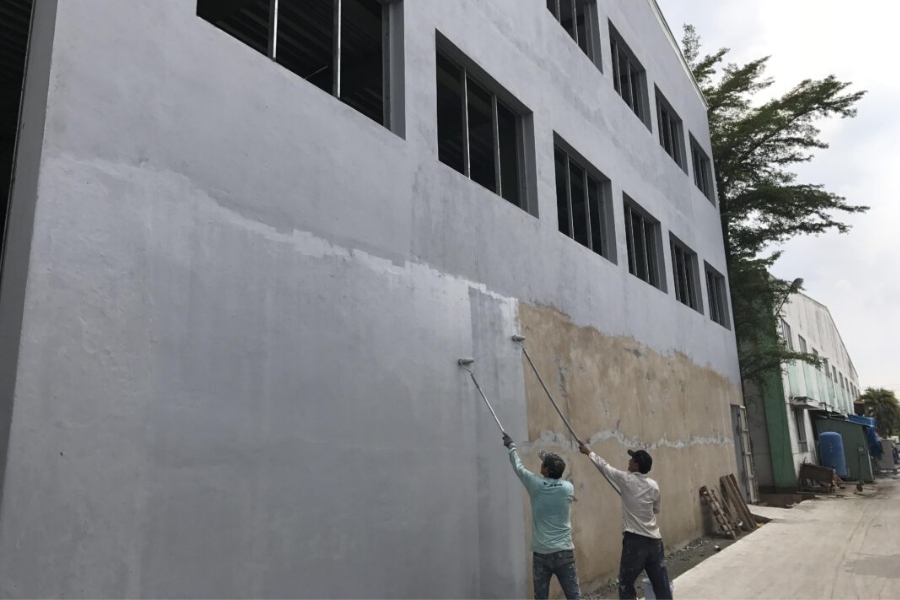 Chống thấm tường nhà hiệu quả nhất là thực hiện công đoạn này ngay từ khi vừa xây xong. Lúc tường mới vừa khô, người thợ sẽ trát phẳng, đánh bóng, làm sạch và quét lên một lớp sơn chống thấm tường ngoài trời.