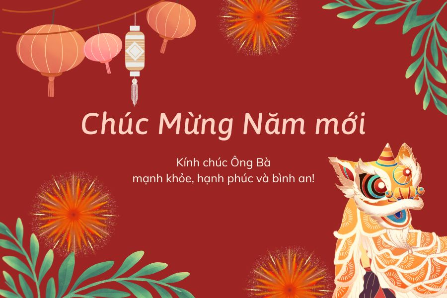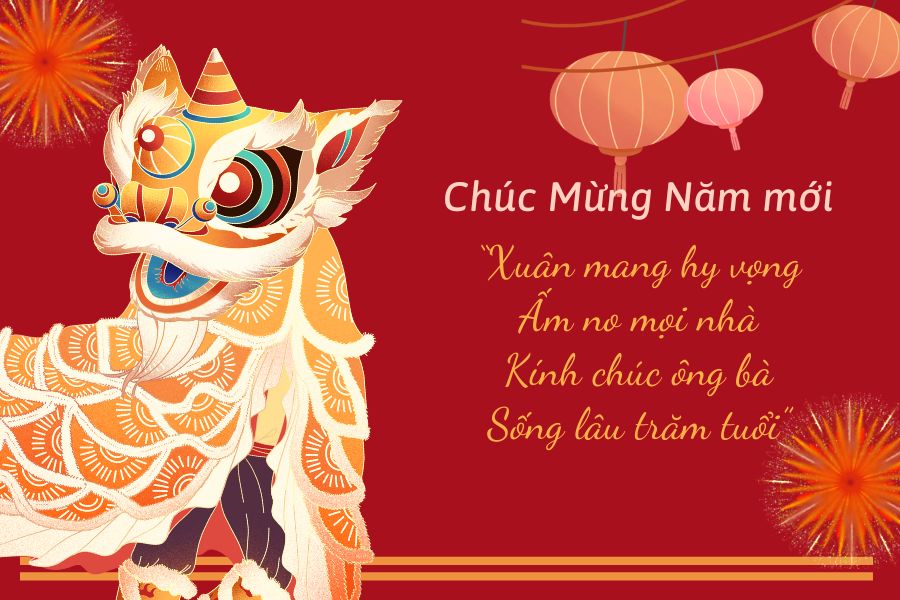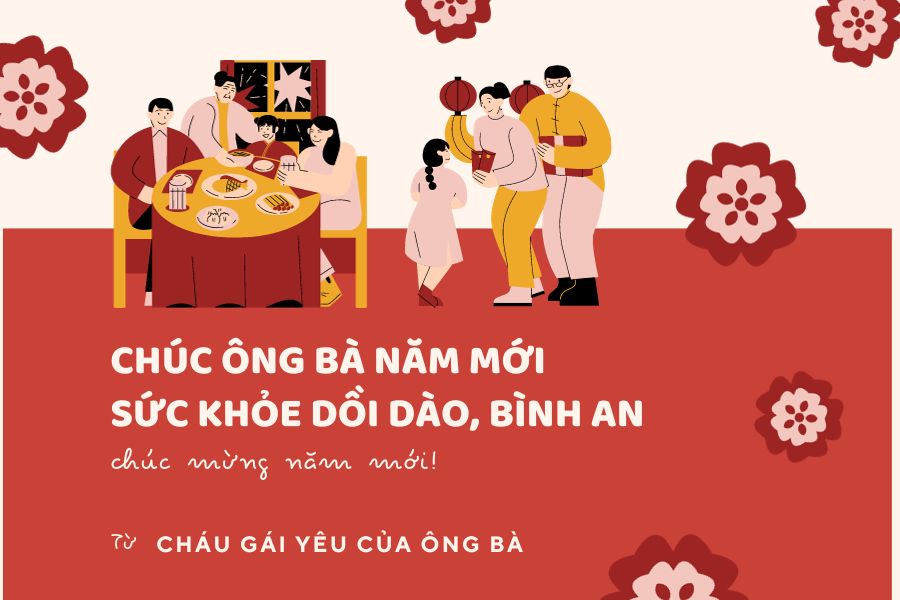 - Nhân dịp Tết đến, con gửi lời chúc Tết đến ông bà yêu quý của con. Chúc ông bà có một năm mới dồi dào sức khỏe, may mắn ngập tràn, hạnh phúc, và những điều tốt lành luôn đến với ông bà. Con yêu quý ông bà nhiều lắm!