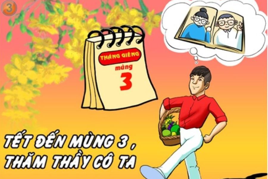 Và cuối cùng là mùng 3 “Tết thầy”. Đây là ngày dành cho thầy cô, những người đã nuôi lớn chúng ta qua từng con chữ và những bài học. Các học trò bày tỏ lòng biết ơn nghĩa, lòng tri ân người có công khai tâm cho con người bằng trí thức, bằng chữ đến thầy cô giáo.