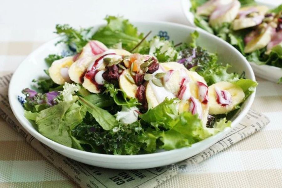 Món salad thanh mát mà chứa nhiều chất xơ, không chỉ chất xơ từ chuối mà còn từ các loại rau, củ, quả khác. Đa dạng các nguyên liệu sẽ kích thích vị giác hơn. Tăng thêm sự phong phú hương vị cho thực đơn giảm cân của bạn.