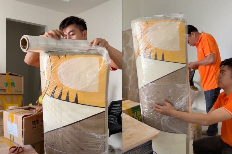 Đối với các món nội thất lớn, đội ngũ sẽ sử dụng chăn lót hoặc mút xốp để bảo vệ khỏi va đập. Mỗi thùng hàng đều được dán nhãn rõ ràng và ghi chú chi tiết, giúp dễ dàng nhận biết và tránh thất lạc hay hư hỏng trong quá trình vận chuyển.