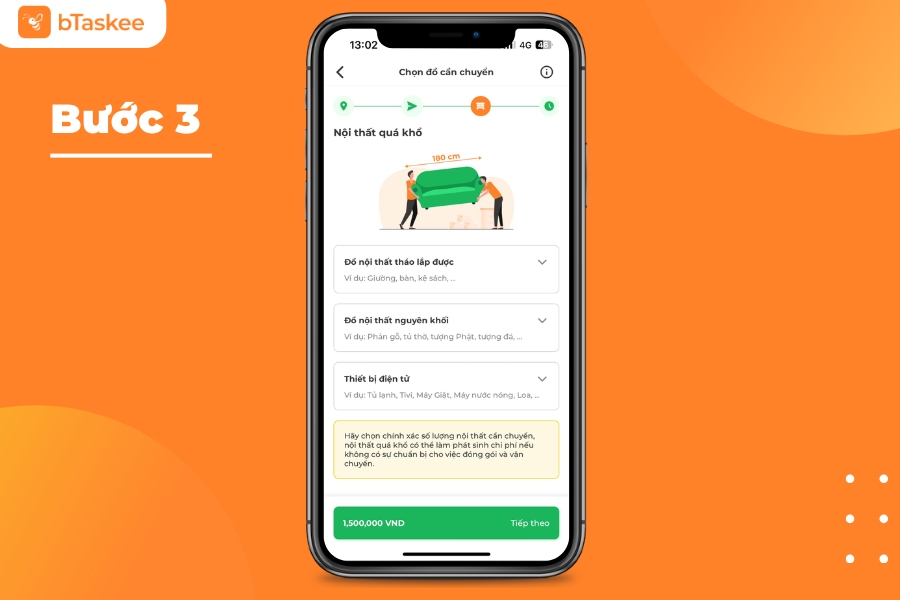 Bước 3: Lựa chọn đồ đạc cần chuyển (không bắt buộc).