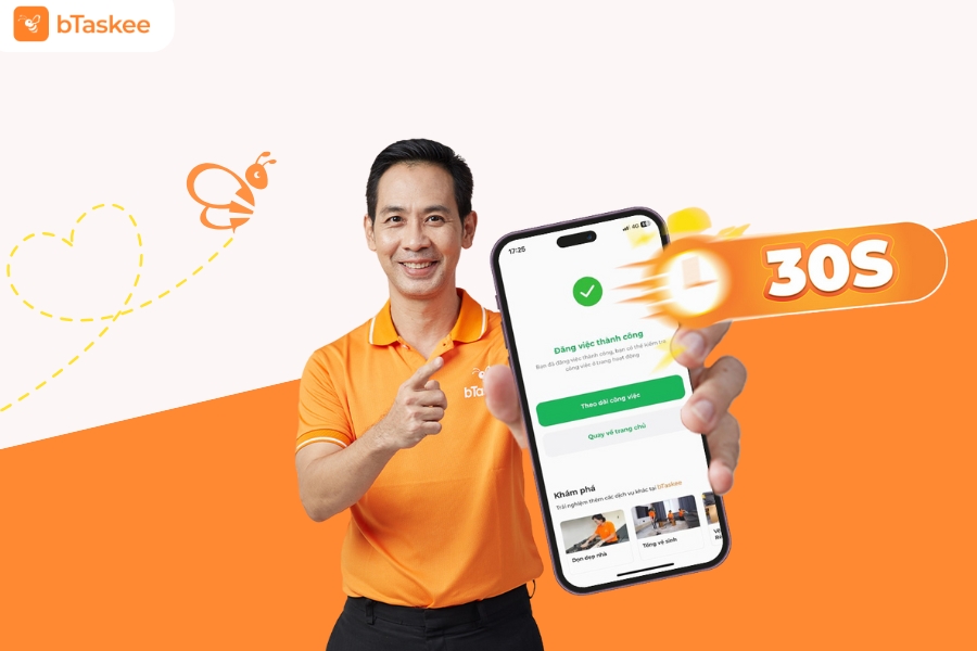 Với ứng dụng bTaskee, toàn bộ quy trình từ đặt lịch, thanh toán, theo dõi tiến độ đến gửi phản hồi đều được thực hiện dễ dàng và nhanh chóng ngay trên app.