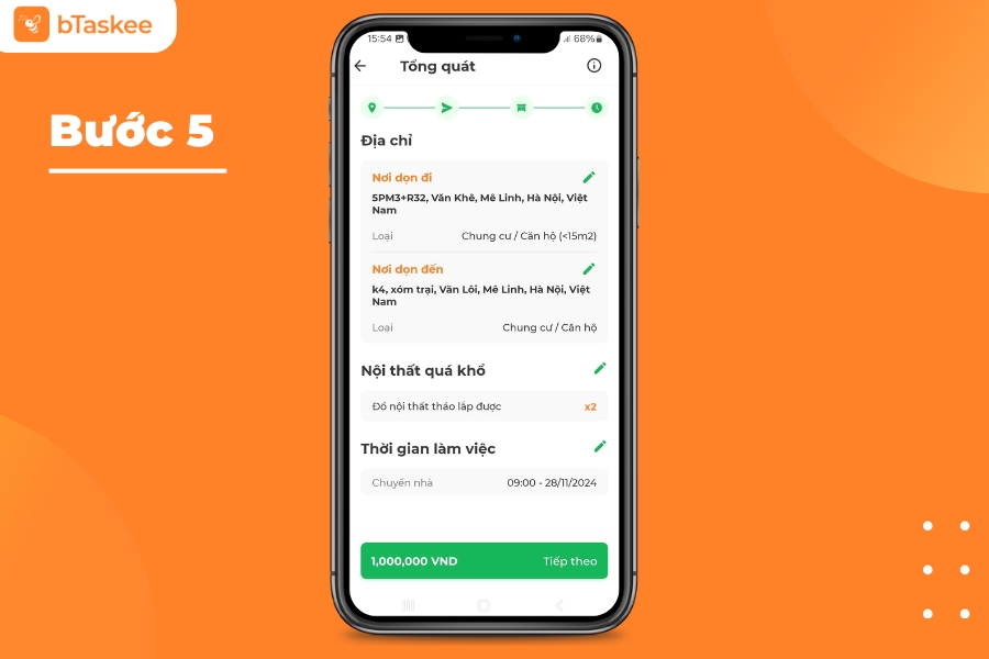 6 Bước Đặt Lịch Chuyển Nhà Nhanh Chóng Tại Huyện Mê Linh Qua Ứng Dụng bTaskee
