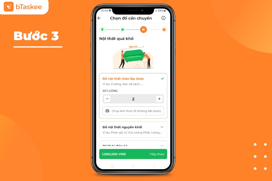 Bước 3: Lựa chọn đồ đạc cần chuyển (không bắt buộc)