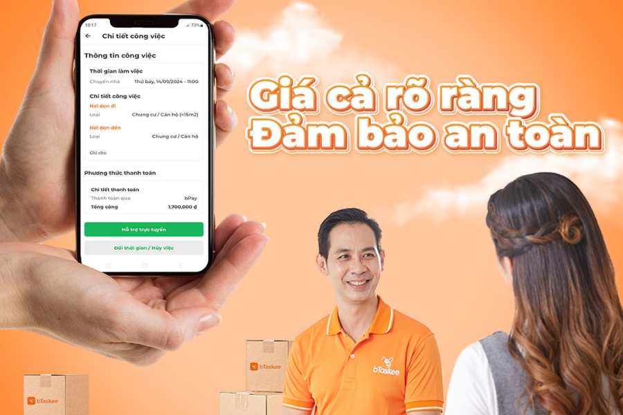 Với bTaskee, chỉ cần vài thao tác đơn giản trên ứng dụng, bạn sẽ được hỗ trợ toàn diện từ đóng gói, vận chuyển đến dọn dẹp sạch sẽ không gian mới.