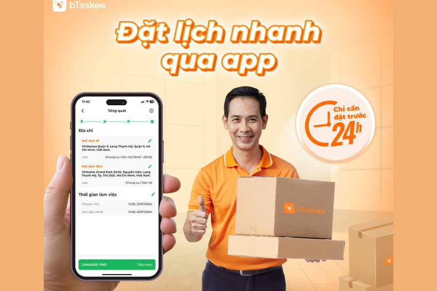 Hãy để bTaskee giúp bạn trải nghiệm dịch vụ chuyển nhà trọn gói, giá cả minh bạch với uy tín hơn 9 năm kinh nghiệm trong ngành. Đặc biệt, chỉ cần thao tác trên ứng dụng, không cần khảo sát trước!