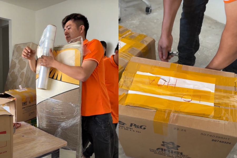 - Bao bọc: dùng màng bảo vệ PE để bọc kỹ các món đồ cồng kềnh, đồ điện tử và đồ dùng quan trọng.