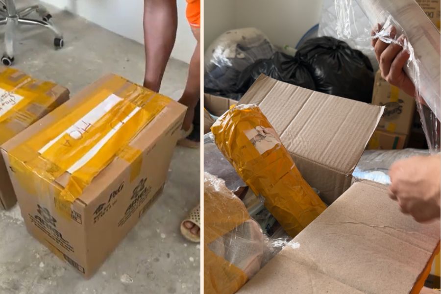 - Quấn màng PE hoặc xốp chống sốc xung quanh vật dụng, đảm bảo bao bọc kín các góc cạnh và bề mặt dễ bị tổn thương.