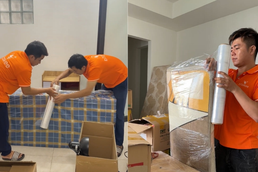 - Thiết bị điện tử và đồ nội thất: Tháo rời từng bộ phận, bọc vải vào các góc cạnh, bọc chống sốc và nhựa PE bên ngoài chống trầy xước.