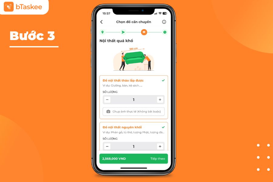 Bước 3: Lựa chọn đồ đạc cần vận chuyển (không bắt buộc)