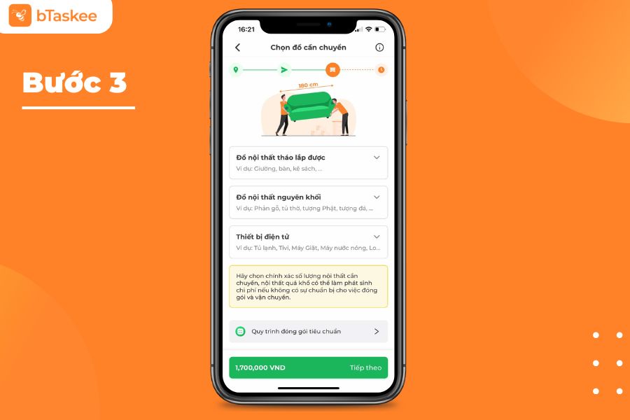 Bước 3: Chọn đồ đạc cần chuyển (không bắt buộc)