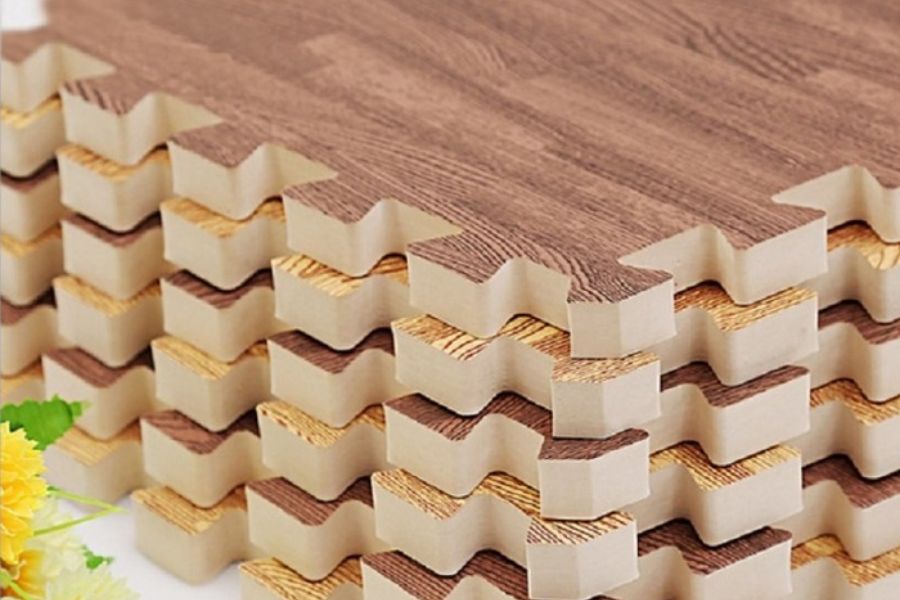 - Thảm xốp trải sàn vân gỗ: Với thiết kế giống lấy vân gỗ làm chủ đạo thì mẫu thảm này được nhiều người lựa chọn để trang trí nội thất không gian. Việc sử dụng này vừa đảm bảo thẩm mỹ vừa bảo vệ sàn nhà tốt.