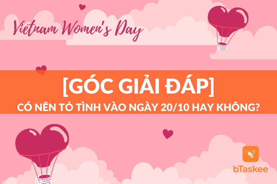 Ngày 20/10 là một dịp lễ nhằm tôn vinh phụ nữ, trong ngày này các nàng thường ấp ủ nhiều mong muốn và chờ đợi những điều tốt đẹp đến gần. Mong rằng sau khi xem xong những chia sẻ từ bTaskee bạn đã câu trả lời cho câu hỏi: “Có nên tỏ tình vào ngày 20/10 hay không?”. bTaskee chúc bạn tỏ tình thành công nhé!