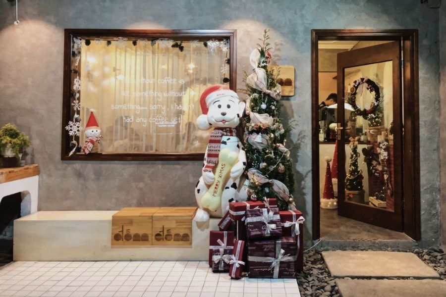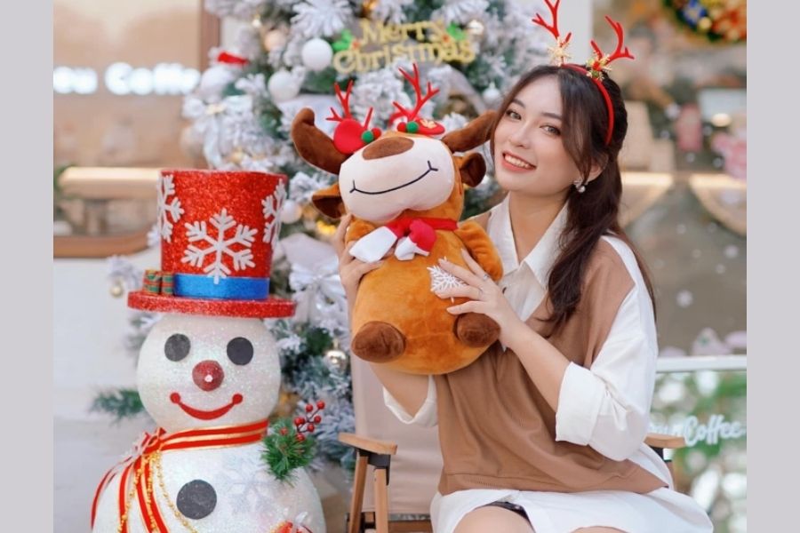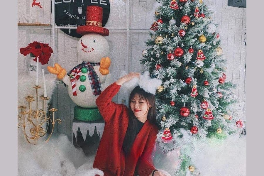 Chụp ảnh Giáng Sinh ở quán cafe decor Noel
