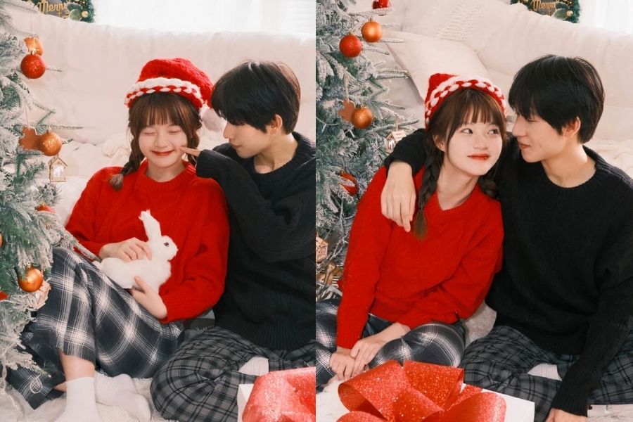 Còn gì ý nghĩa hơn là có một kiểu ảnh kỉ niệm bên người thương vào đêm Giáng Sinh. Cùng nhau mặc đồ đôi, đi ăn uống, xem phim và cùng chụp những bức ảnh ngọt ngào, ấm áp bên nhau chắc chắn sẽ giúp các cặp đôi thêm phần gắn kết và yêu thương nhau hơn nhiều đó.
