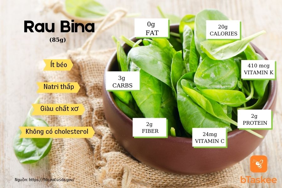 Theo Viện y khoa Hoa Kỳ, rau Bina là một nguồn giàu vitamin K, giúp thúc đẩy quá trình sản xuất một loại protein gọi là Osteocalcin, có tác dụng ổn định canxi trong xương. Ngoài việc giàu vitamin K, rau Bina còn là một nguồn cung cấp canxi và vitamin D, chất xơ, kali, magiê và vitamin C, tất cả đều là những chất dinh dưỡng quan trọng tốt cho sức khỏe của xương.