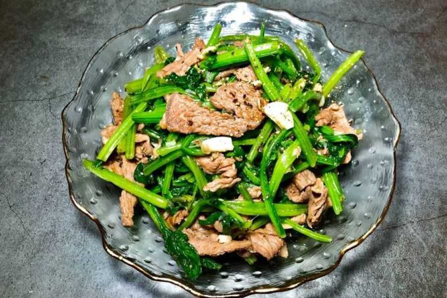 Cải bó xôi xào thịt bò