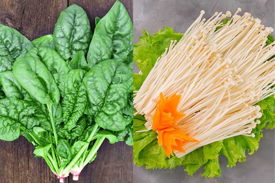 Rau chân vịt sốt nấm kim châm