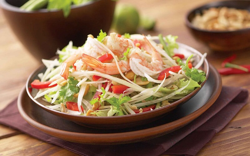 - Cuối cùng, cho tất cả phần rau củ đã ráo nước cùng với thịt gà vào trộn đều cho ngấm gia vị. Trộn nhẹ tay vì sâm đất rất dễ bị nát.